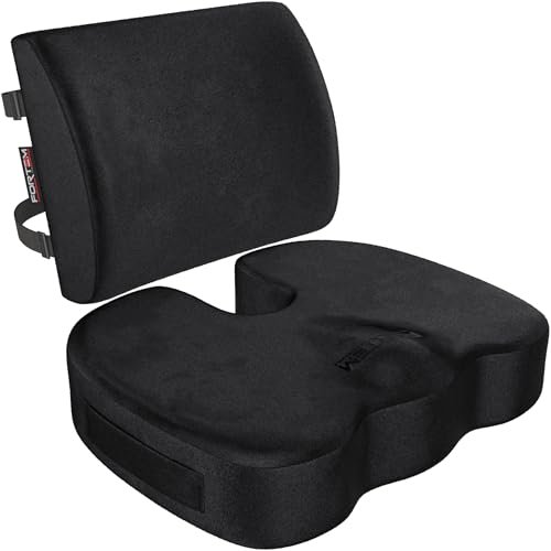 FORTEM Coccyx Cushion, Office Chair Cushion and Back Support for Office Chair, Lumbar Support Pillow, Memory Foam, Non Slip Sitting and Back Rest for Gaming, Chair Pad
