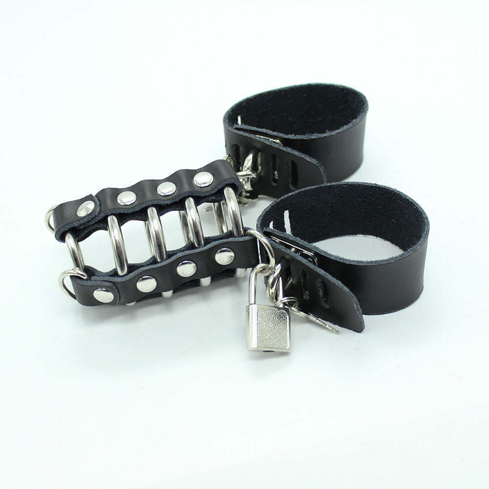 Metal Ring and VF Leather Chastity Cock Cage Male Chastity Cage and Ball Cuffs