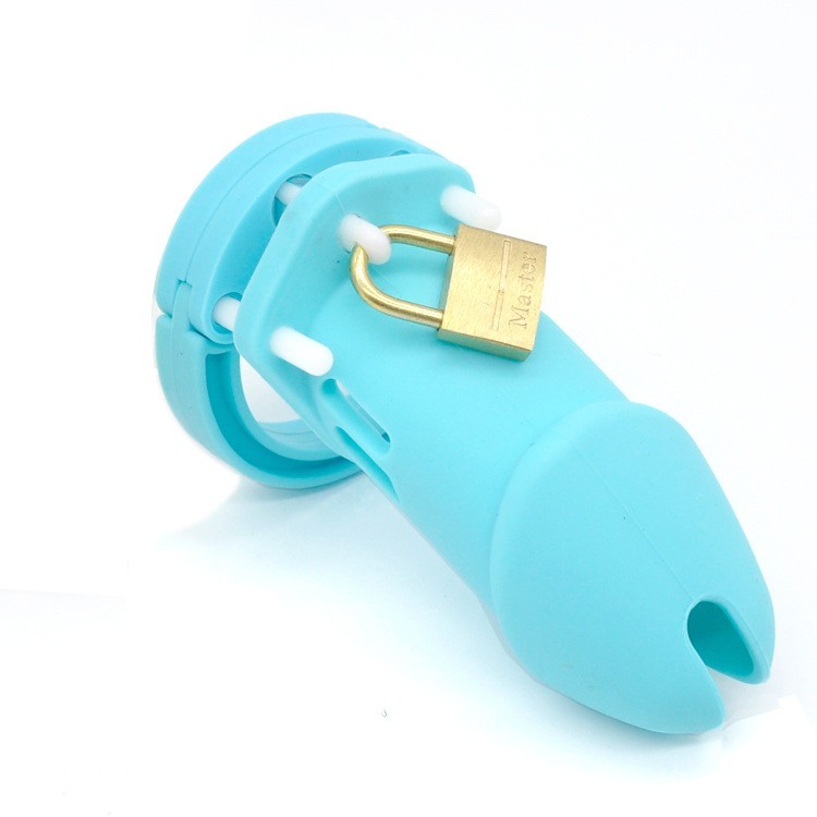 Blue Flexible Silicone Male Cock Cage with Lock & Adjustable Ball Ring for Men