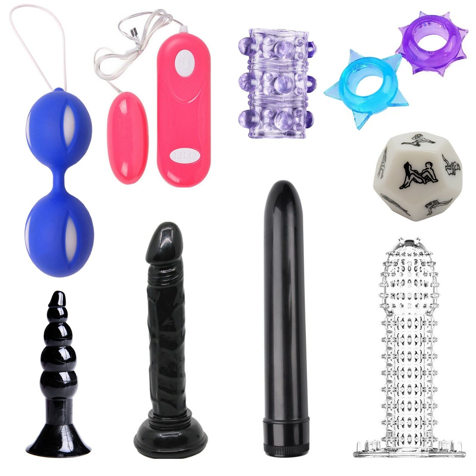 Sex Toy Gift Set 10Pc Anal Plug Cock Ring Bullet Vibrator Kegel Ball Sex Dice UK