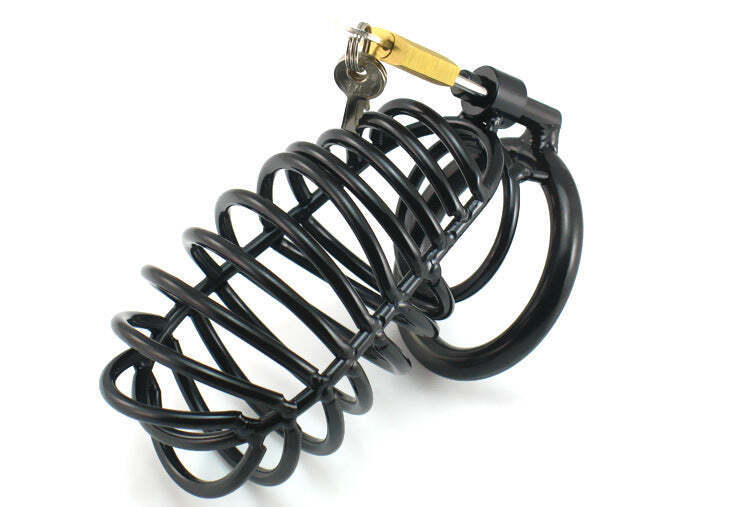 Black Metal Male Chastity Cage with Locking Mechanism - Cock Cage with Ball Ring