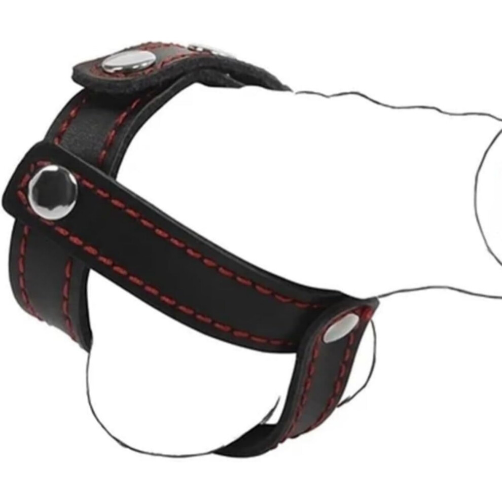 Black Faux Leather Male Cock Ring Harness - Stainless Steel Penis Ring Harness