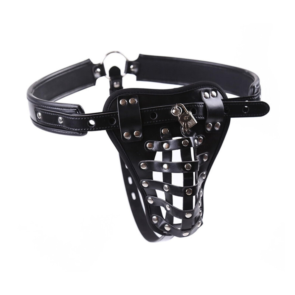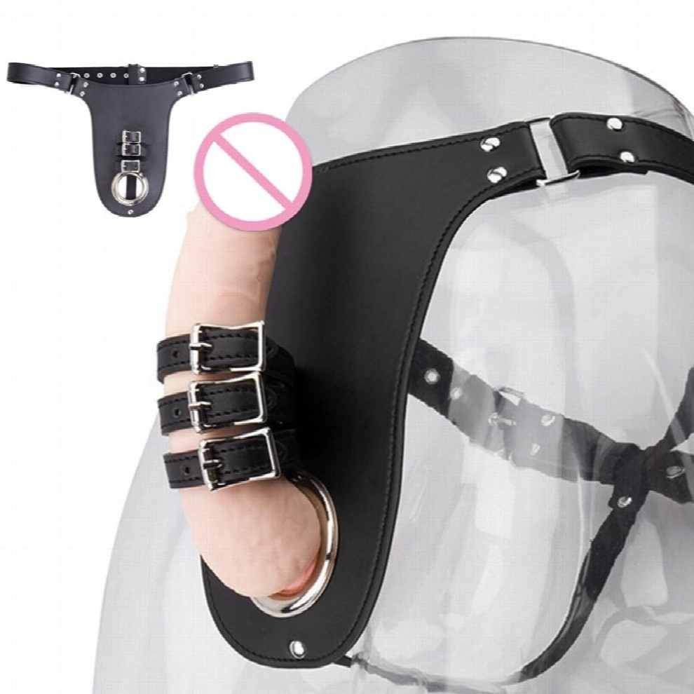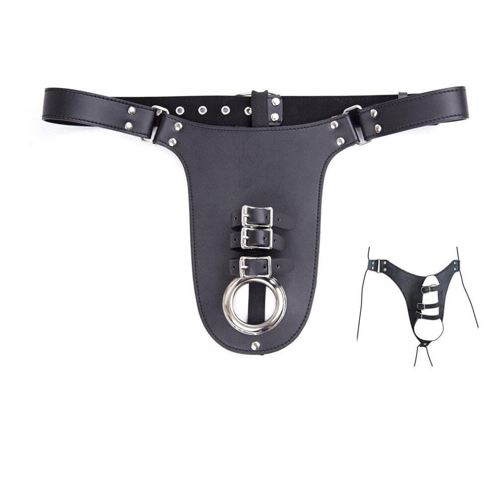 Men's Chastity Belt Leather SM Harness With Cock Rings Black For Beginners Chastity Device Fetish Bondage Gear