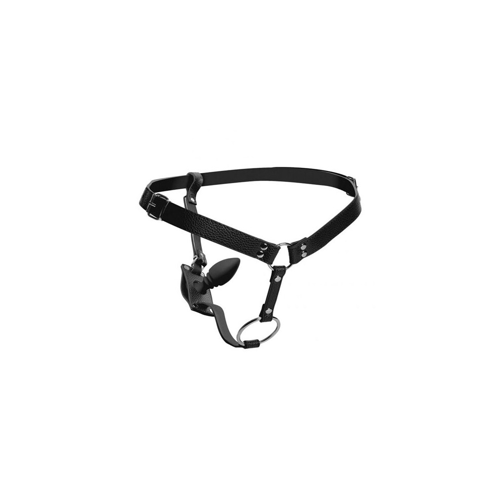 Strict Male Cock Ring Harness with Silicone Anal Plug