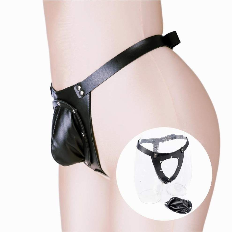 Sexy Mens PU Leather Panties Detachable Cock Cage Chastity Panties Adjustable Harness Body Bondage Straps BDSM Fetish Costume