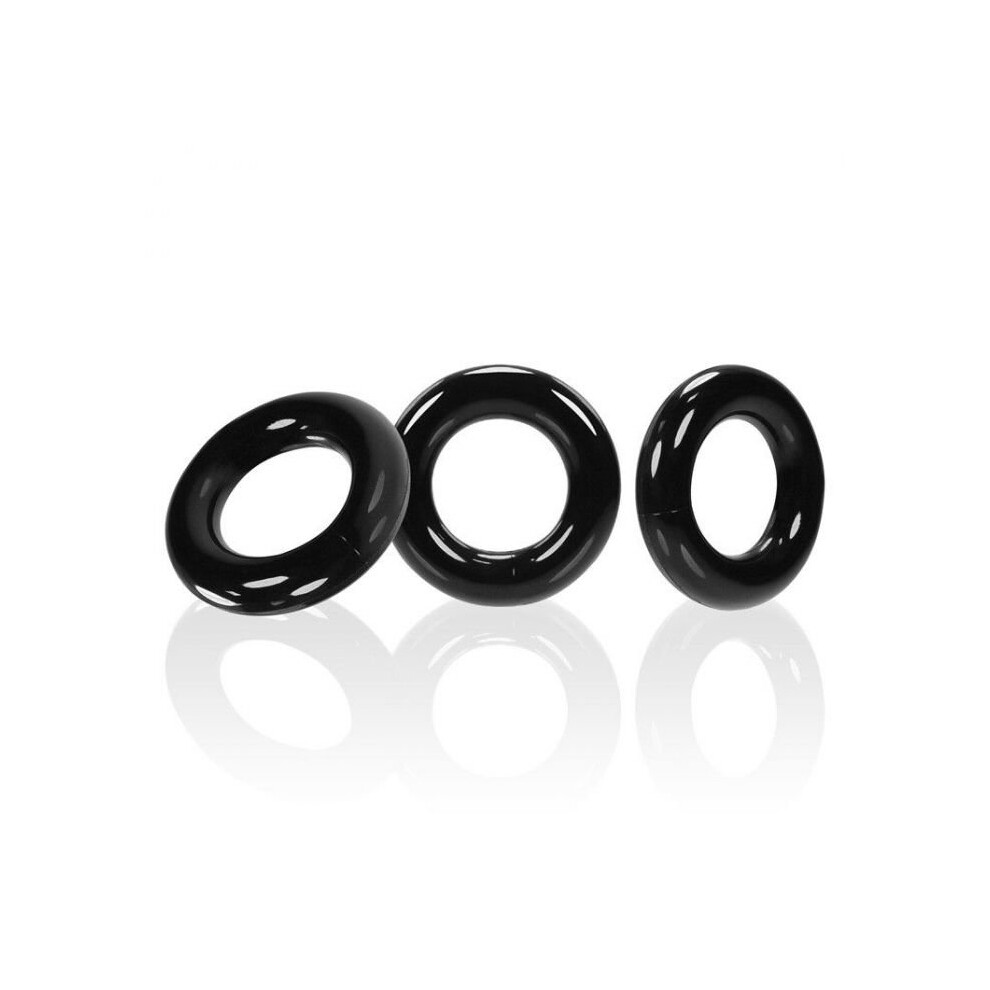 Thick Rubber Loop Cock Rings (3 Set, Black)