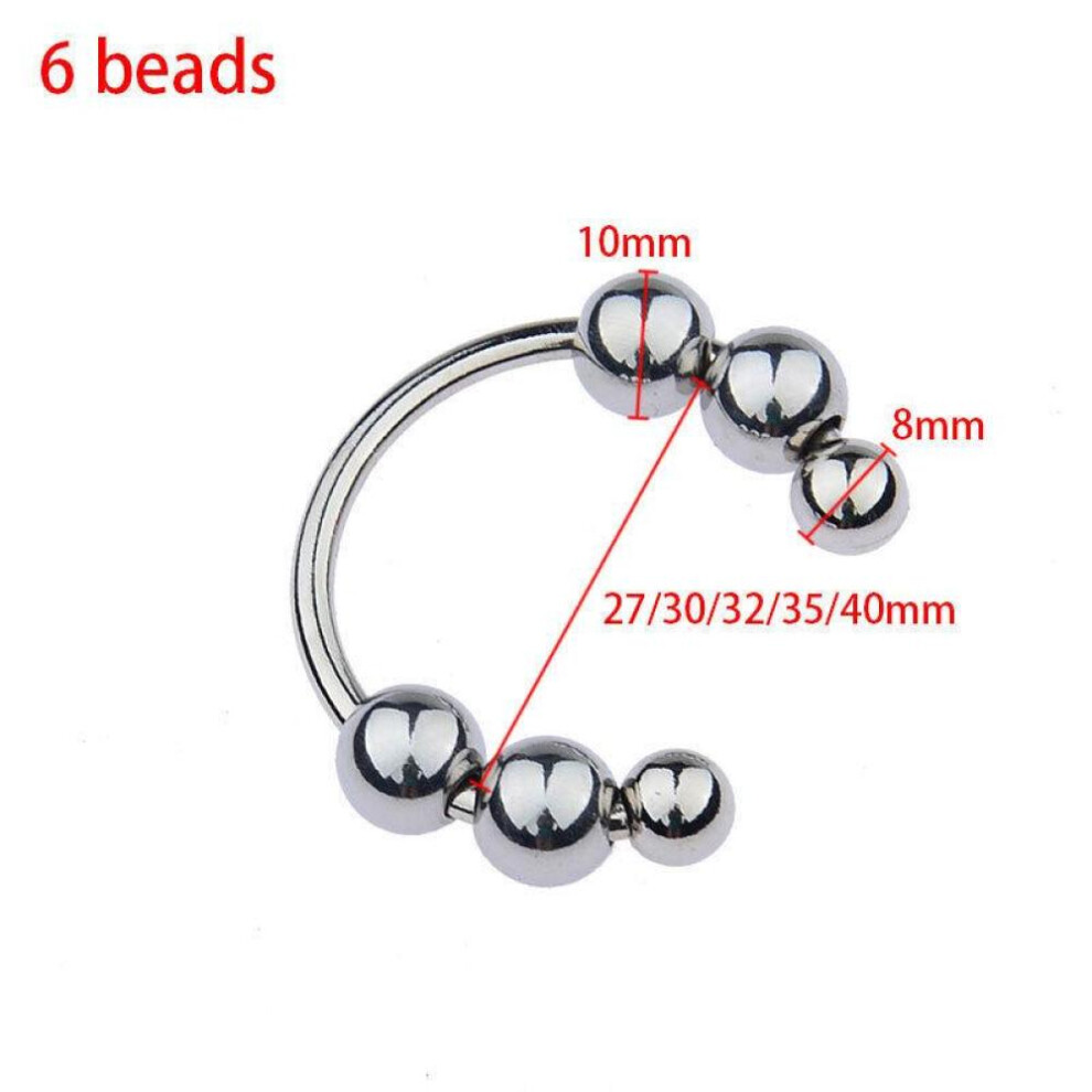 (6 beads-XXL) 2/4/6/10 Rotatable Metal Beads Penis Cock Rings Delay Ejaculation 5 Sizes Metal Male Prolonged Pleasure Ring Round Bead Cock Ring Sex To