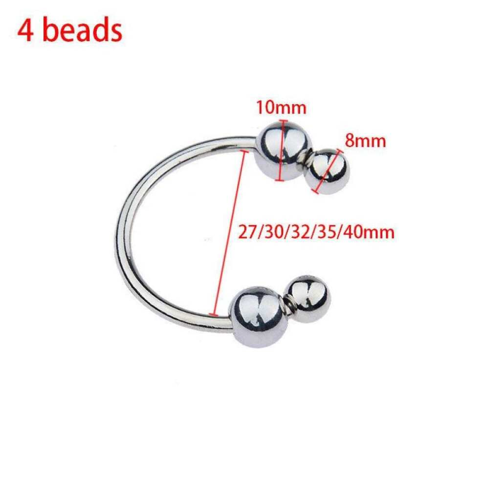 (4 beads-XL) 2/4/6/10 Rotatable Metal Beads Penis Cock Rings Delay Ejaculation 5 Sizes Metal Male Prolonged Pleasure Ring Round Bead Cock Ring Sex Toy