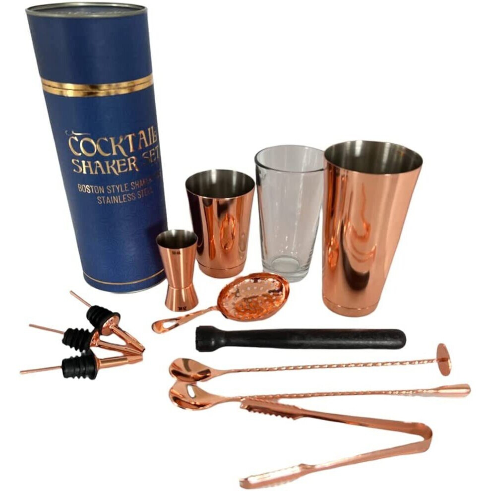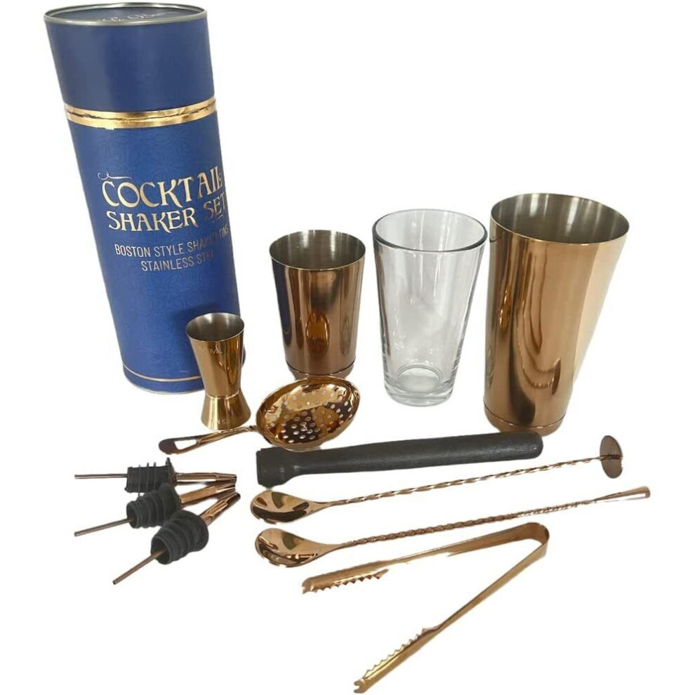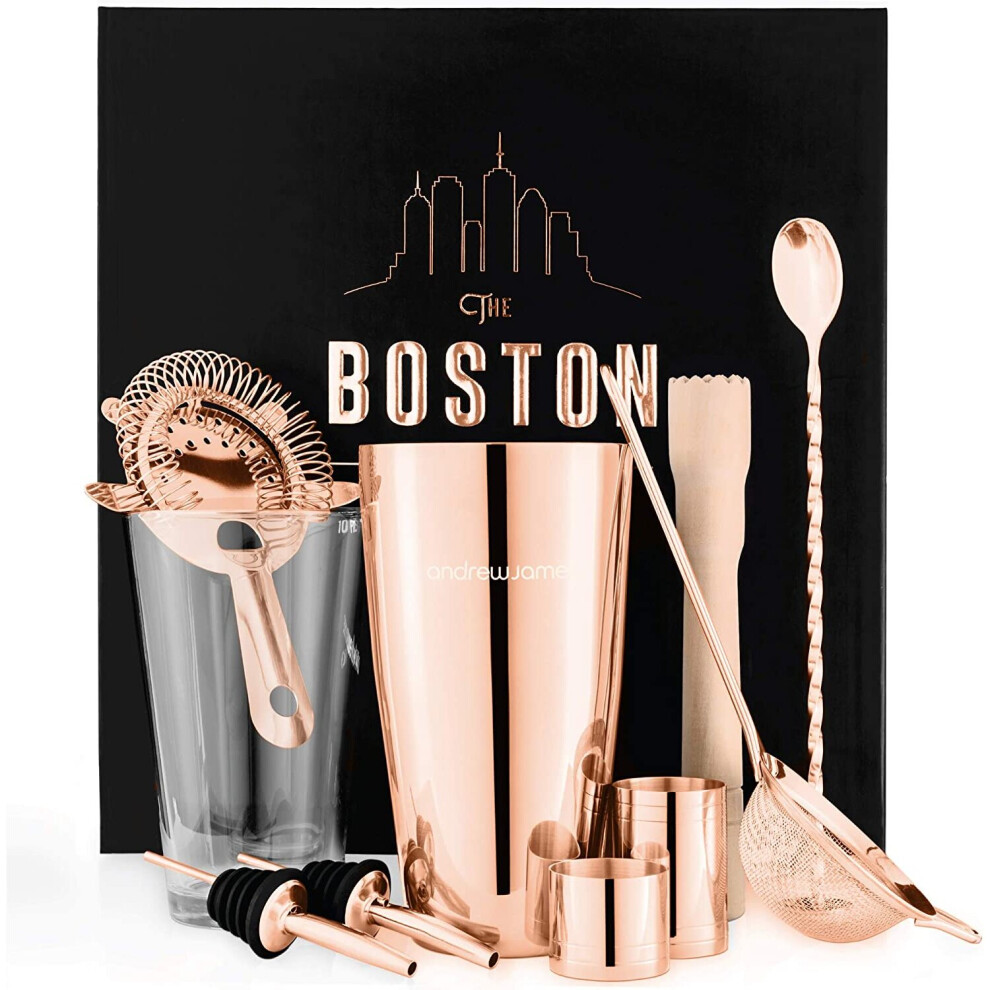Andrew James Boston Cocktail Shaker Set | 10 Cocktail Accessories Including Muddler Jigger Hawthorne Strainer and Twisted Bar Spoon | Gift Box ? (Rose