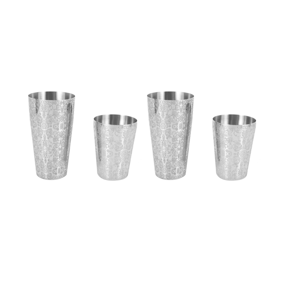 Boston Cocktail Shaker Set Stainless Steel Weighted and Unweighted Tins with Etched Pattern 18 28oz