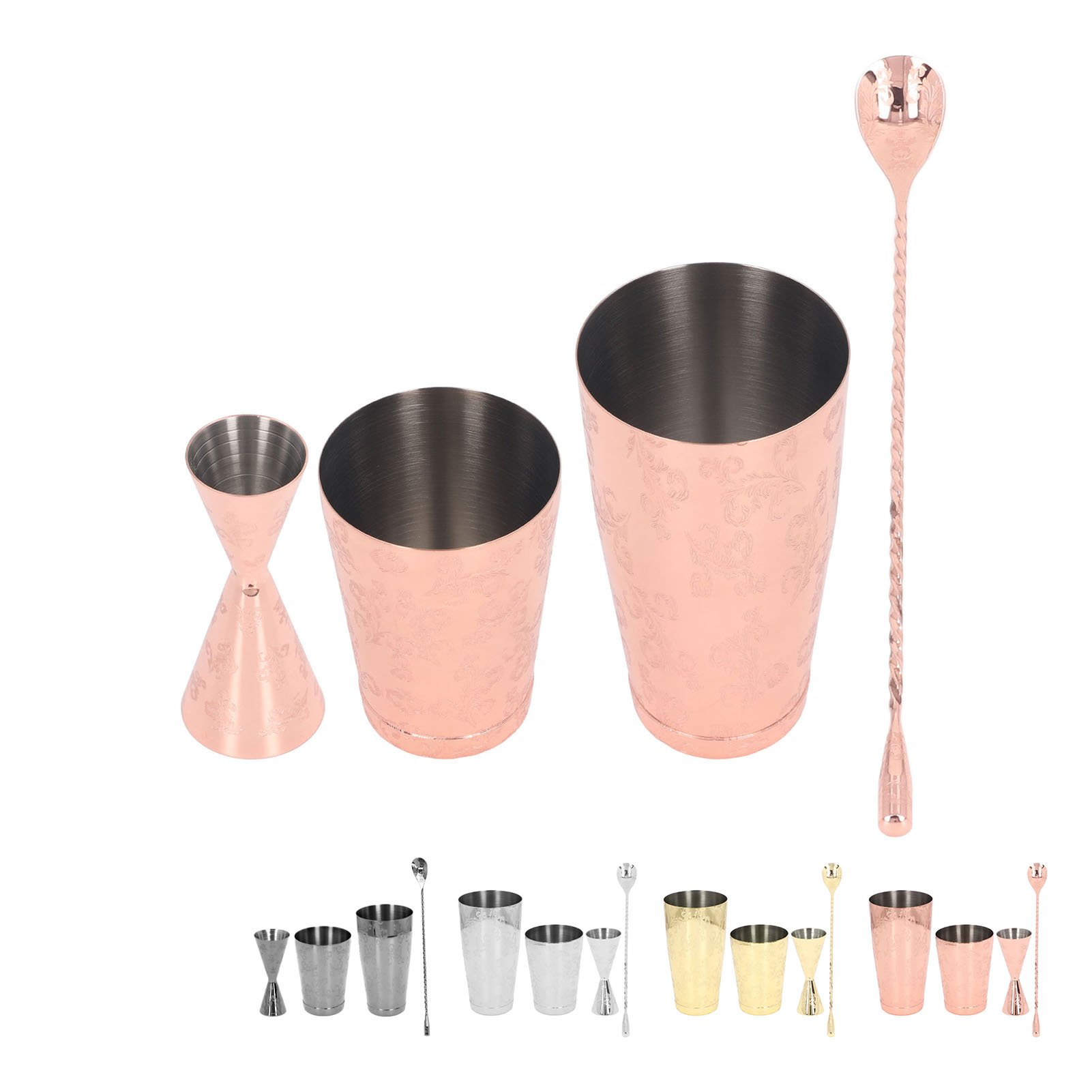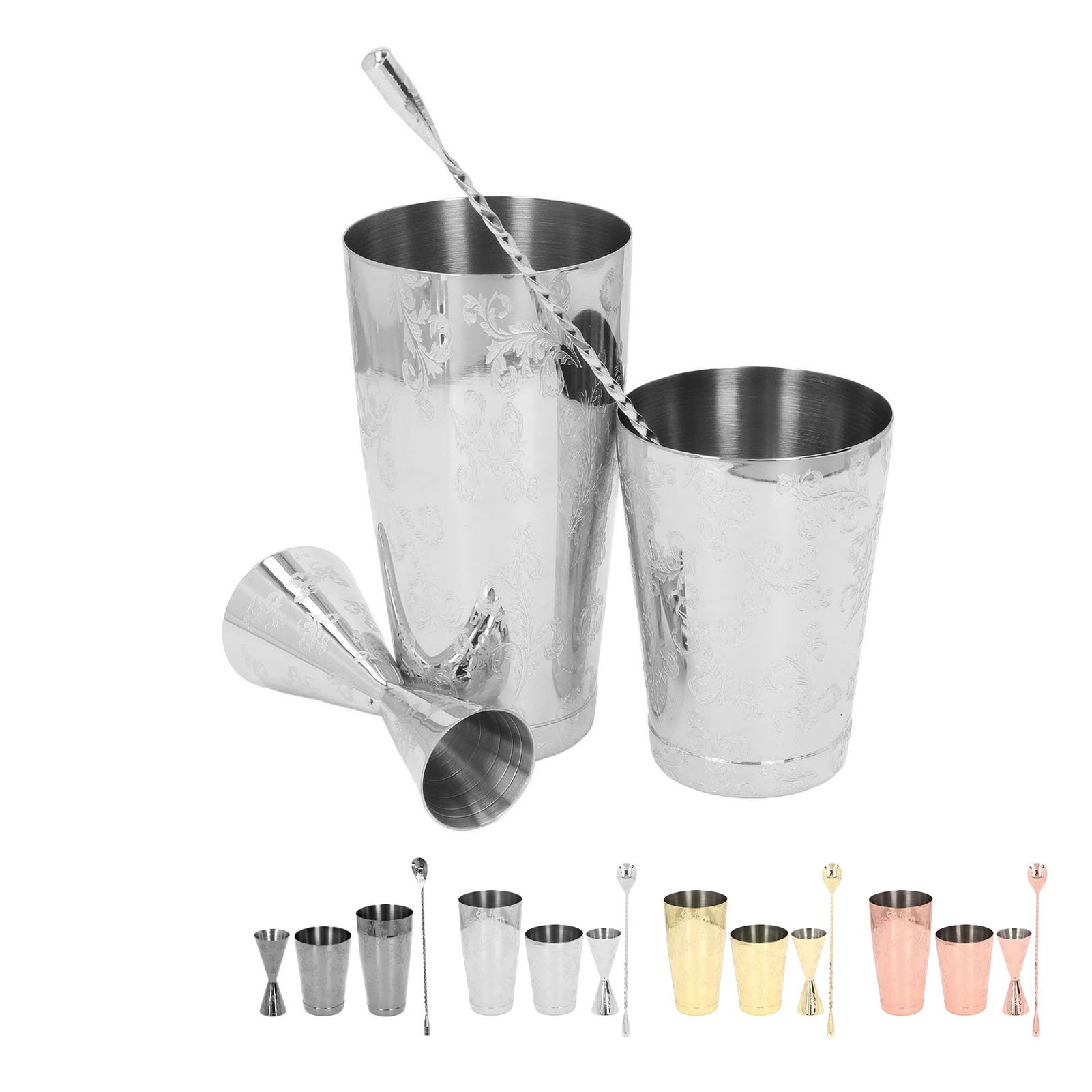 4X Cocktail Shaker Boston Shaker Barra de Ferramentas Engraving Design Boston Cocktail Shaker Tin Set