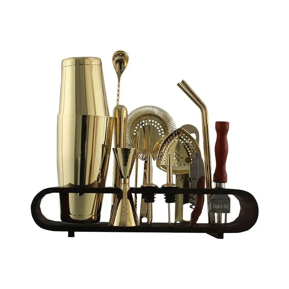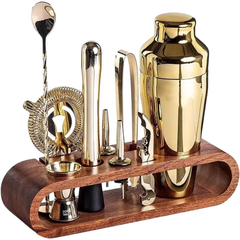 Gold Boston Cocktail Shaker Set with Bamboo Stand, 10Piece Bartender Kit for Home and Outdoor Use