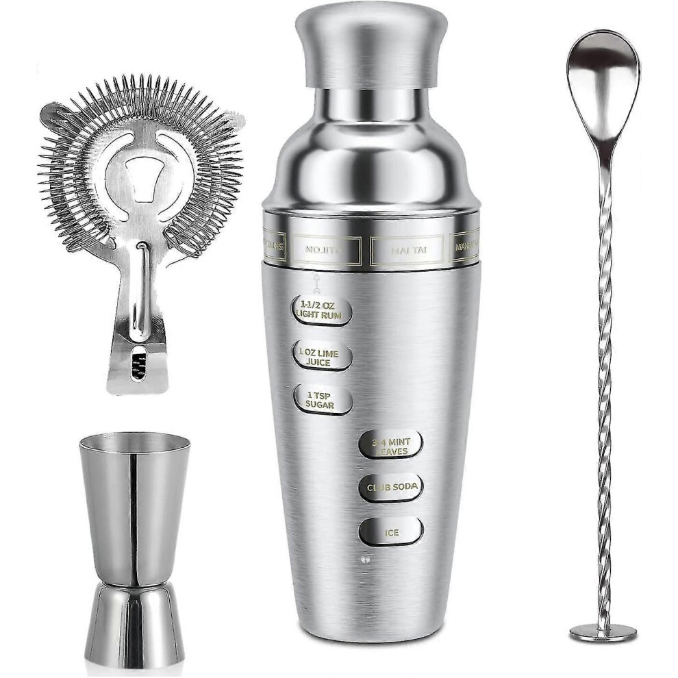 Set 4 Boston Cocktail Shaker Set Multifunctional 304 Stainless Steel Vintage