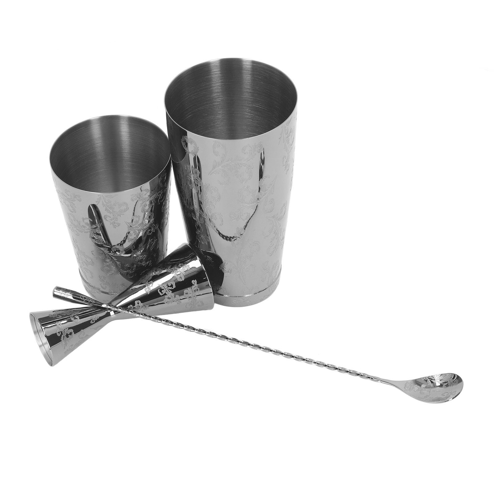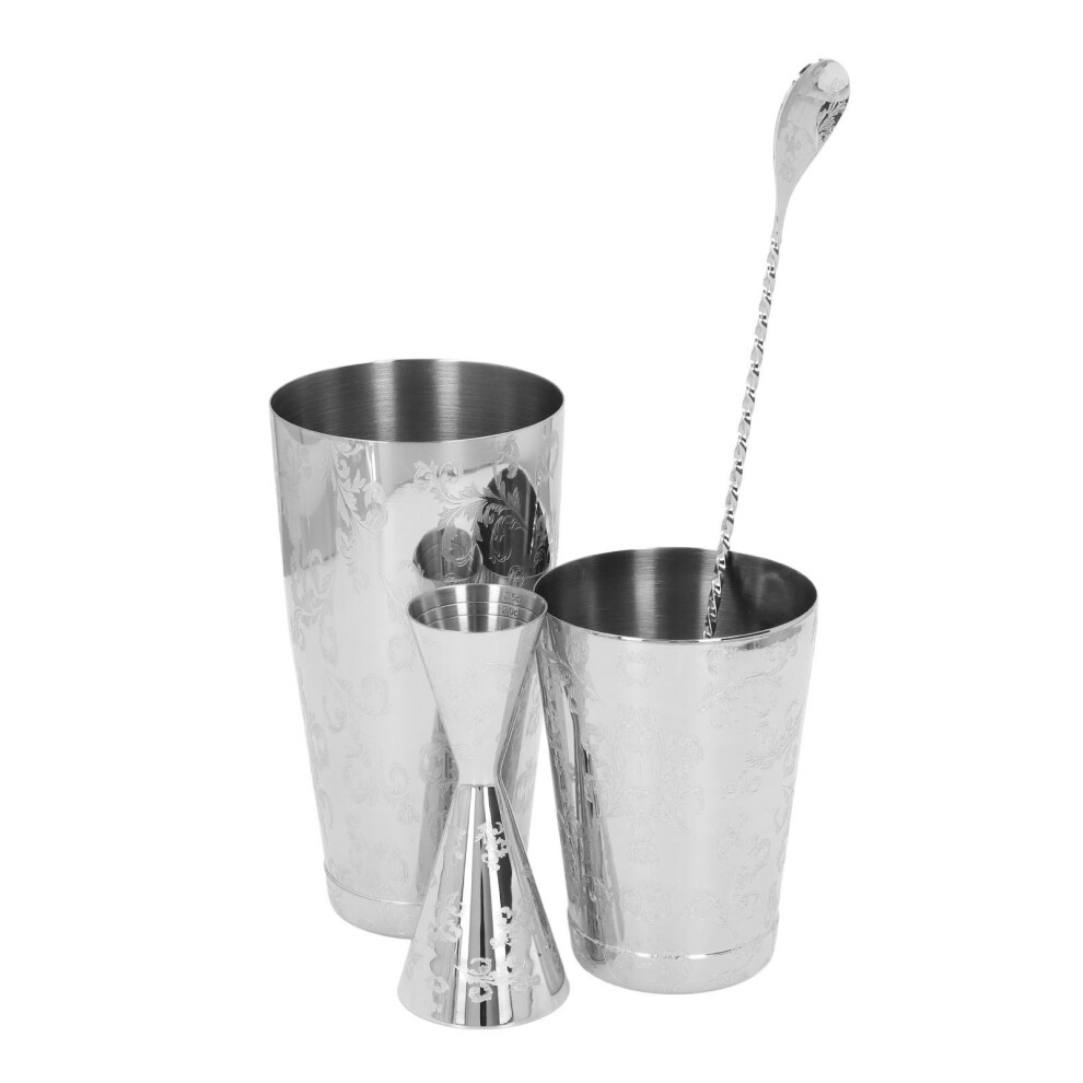 Boston Cocktail Shaker Set Stainless Steel Leakproof Engraved Design for Professional Bartenders