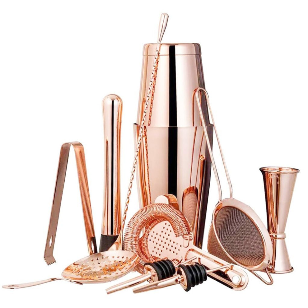 (Rose Gold - CA213) 12 Piece Essential Stainless Steel Bartender Cocktail Boston Shaker Set