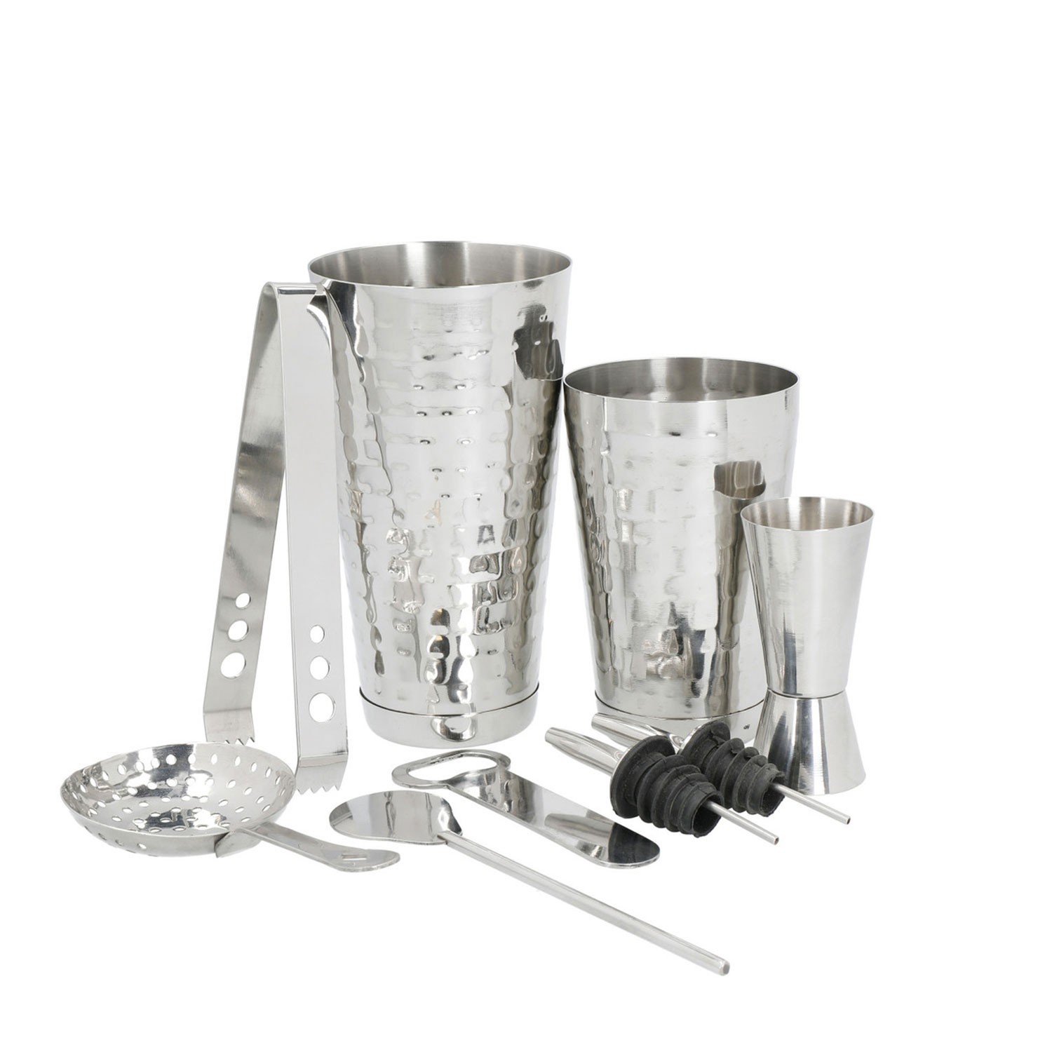BarCraft 8-Piece Boston Cocktail Shaker Set Stainless Steel Hammered Finish