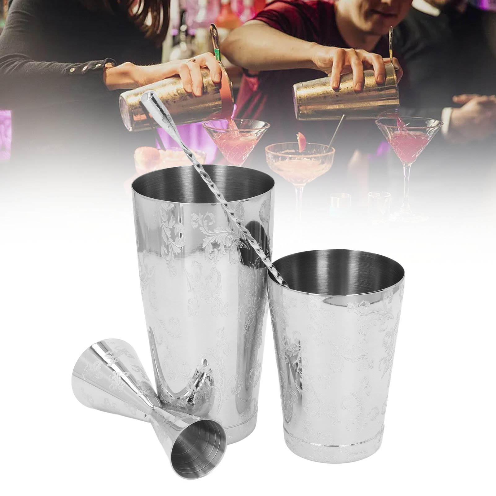 Boston Cocktail Shaker Set Multifunctional 304 Stainless Steel Vintage Prin HEN
