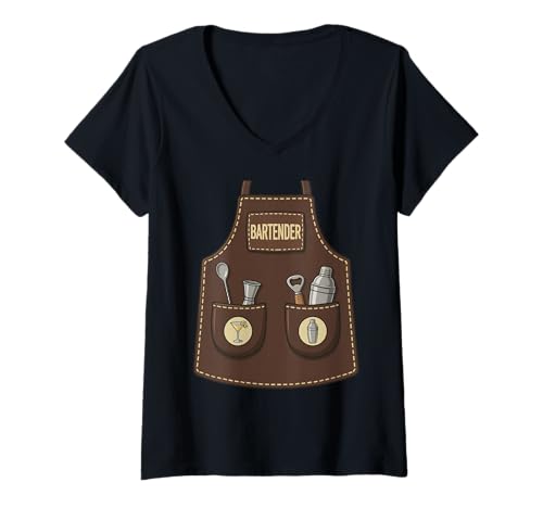 Women's Bartender Funny Mixologist Cocktail Maker Apron Costume V-Neck T-Shirt