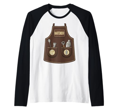 Bartender Funny Mixologist Cocktail Maker Apron Costume Raglan Baseball Tee