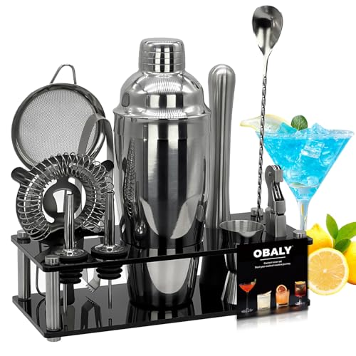 OBALY Bartender Kit - 11-Piece Cocktail Shaker & Muddler Set with Bamboo Stand - 25oz Boston Shaker - Perfect for Martinis & Cocktails