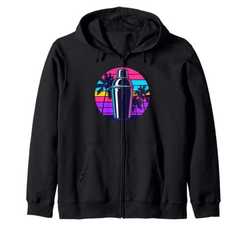 Retro Beach Palm Cocktail Shaker Bartending Bartender Zip Hoodie