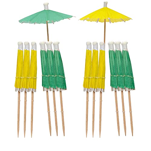 Talking Tables Green & Yellow Cocktail Umbrellas for Drinks Accessories | 12 Pack Party Decorations for Summer, Tropical Luau