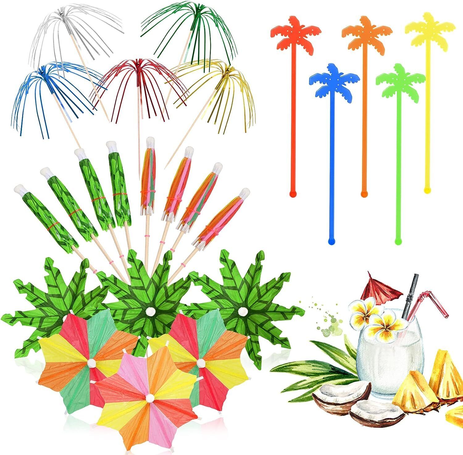 Hoiny 100 Pcs Cocktail Accessories Cocktail Umbrellas for Drinks,Cocktail Party Decorations with Mini Paper Umbrella,Sparkle Fireworks Sticks,Coconut Palm Tree Umbrella and Stirrers,Home Bar
