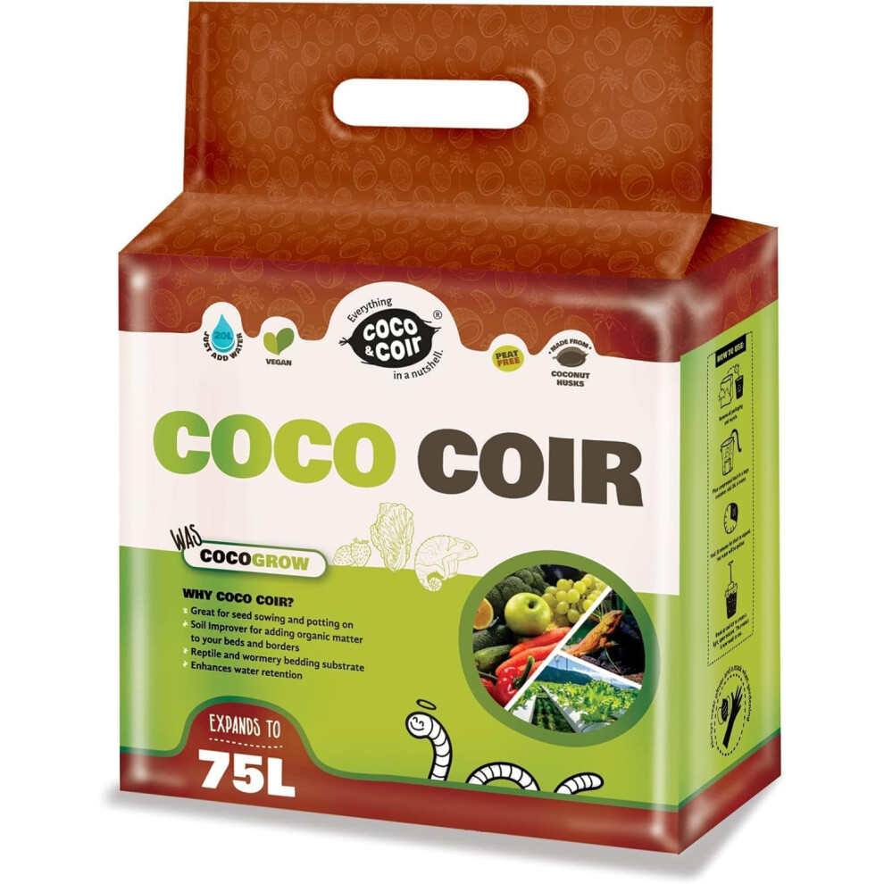 Coco & Coir Organic Peat-free Coir Compost | Natural Coco Soil Potting Mix | Coconut Fibre Reptile Substrate Bedding - Coco Grow (75L)