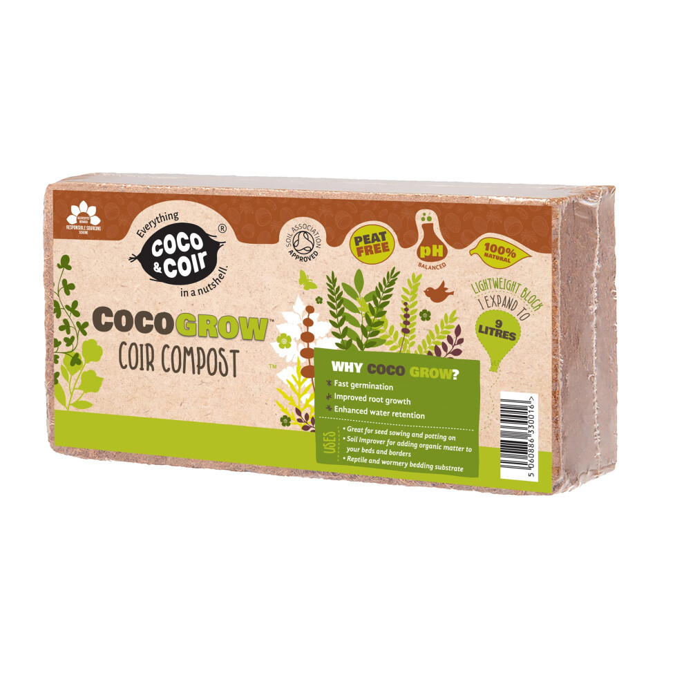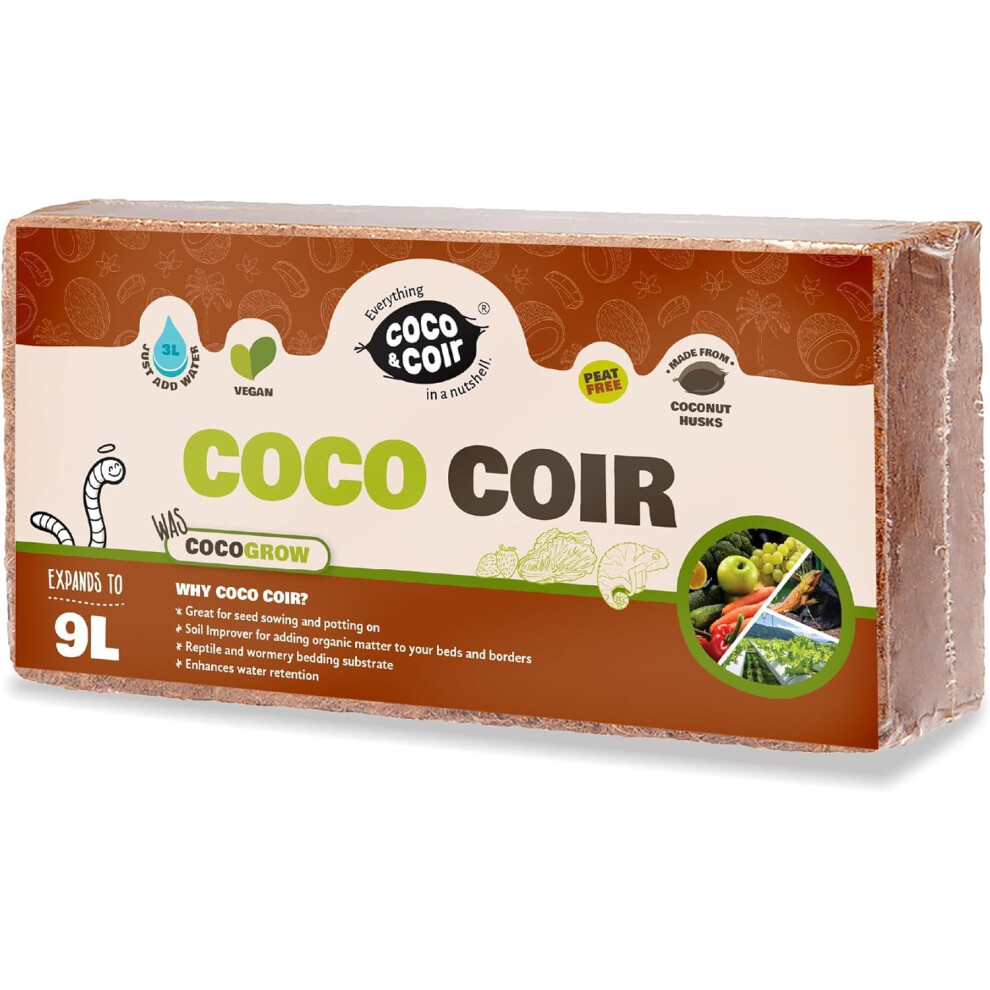COCO & COIR Coco Soil Coconut Fibre. 100% Natural Organic Coconut Coir Compost Brick - Coco Grow (9L)