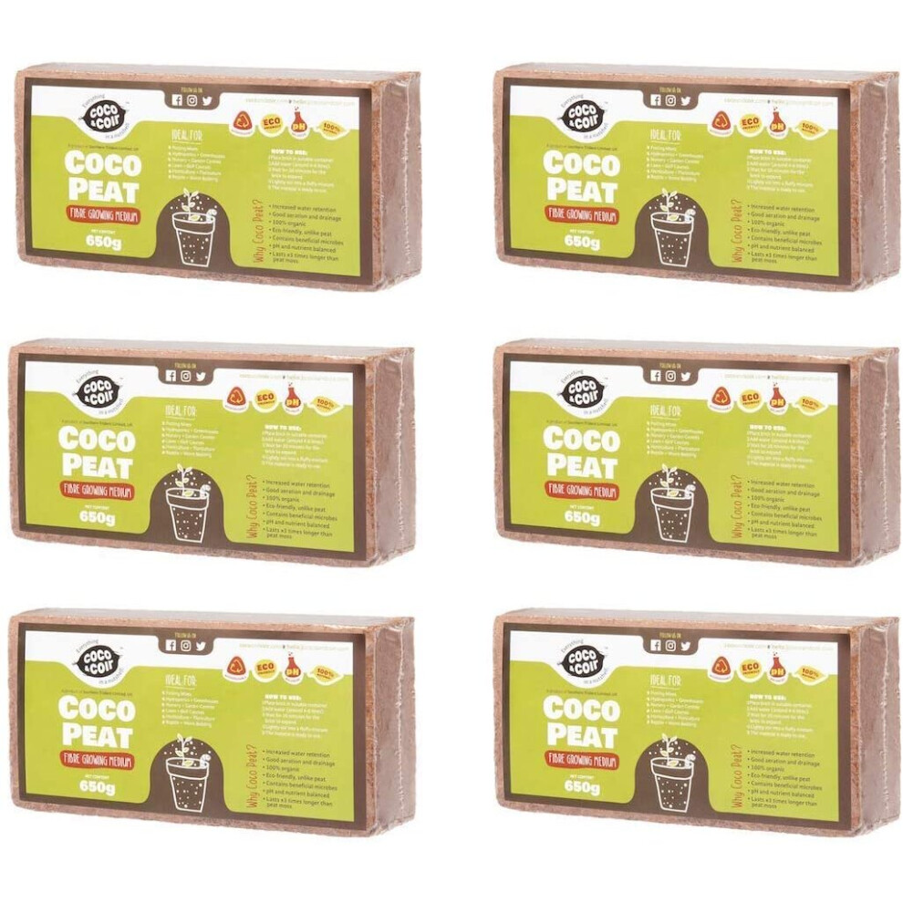 COCO&COIR 6 X 650g (9L) | ORGANIC | COCONUT FIBRE | 100% NATURAL | REPTILE FRIENDLY | GROWING MEDIA | PLANTING COCO SOIL | PREMIUM QUALITY COMPRESSED
