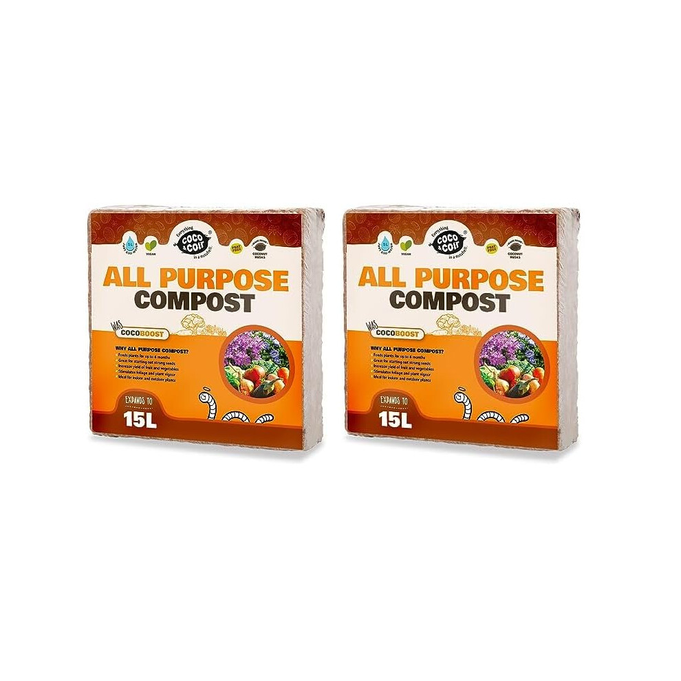 Coco Coir Peatfree Compost Potting Compost with 6 months Nutrition Coir Soil for Plants IndoorsOutdoor Coco Boost 15L 1KG Pack of 2