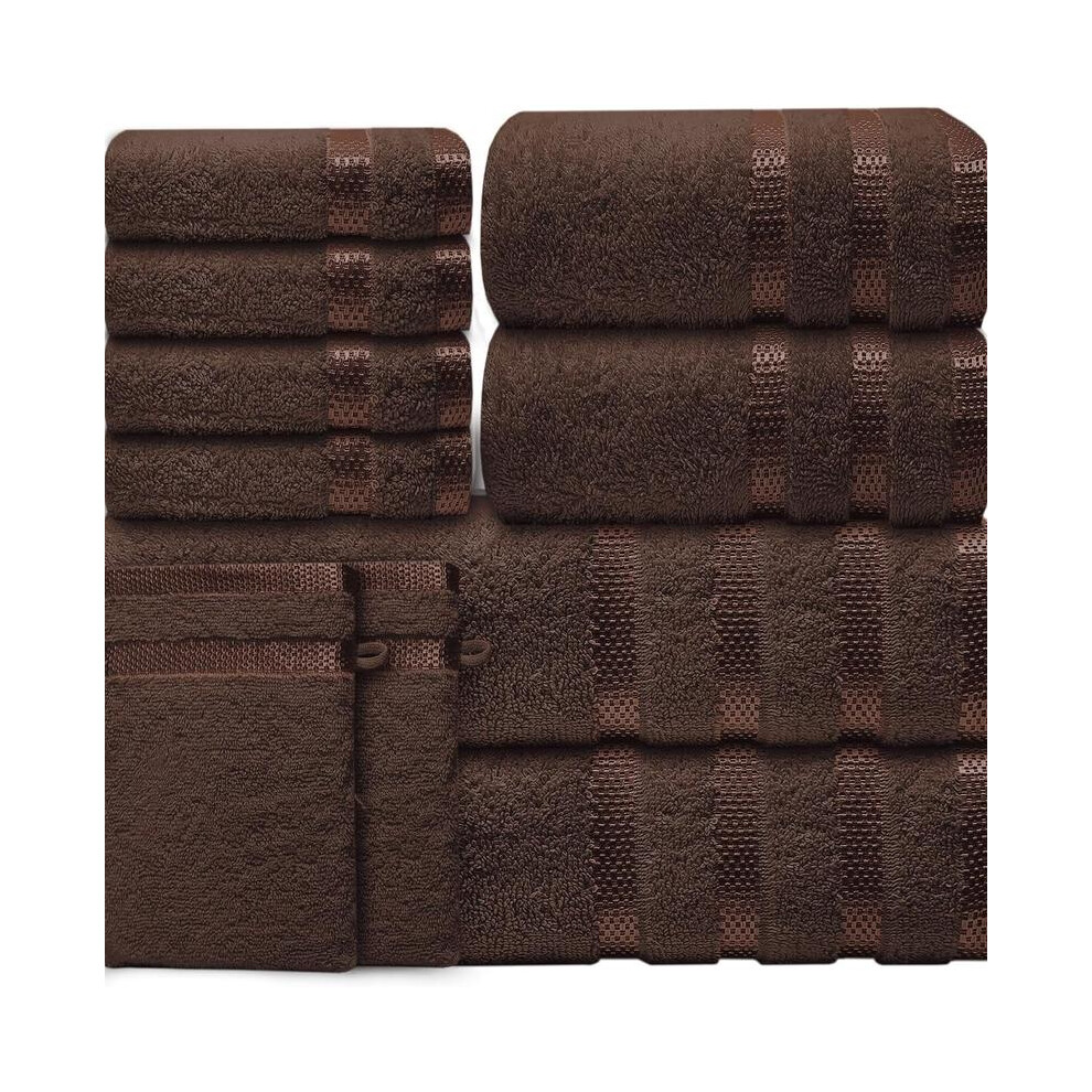 (Brown 10pcs Premium) 10 Luxury Towel Set- 10 Piece Towels for Bathroom 100% Cotton-2 Bath Towels, 2 Hand Towels, 4 Face cloth & 2 Body Wash Gloves Hi