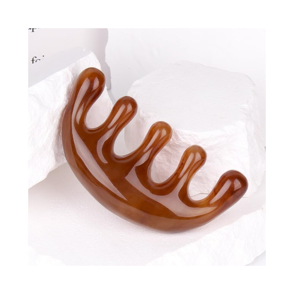Body Meridian Massage Comb Gua Sha Massage Device for Head Face Scalp Made of Resin Wide Tooth Brown-B