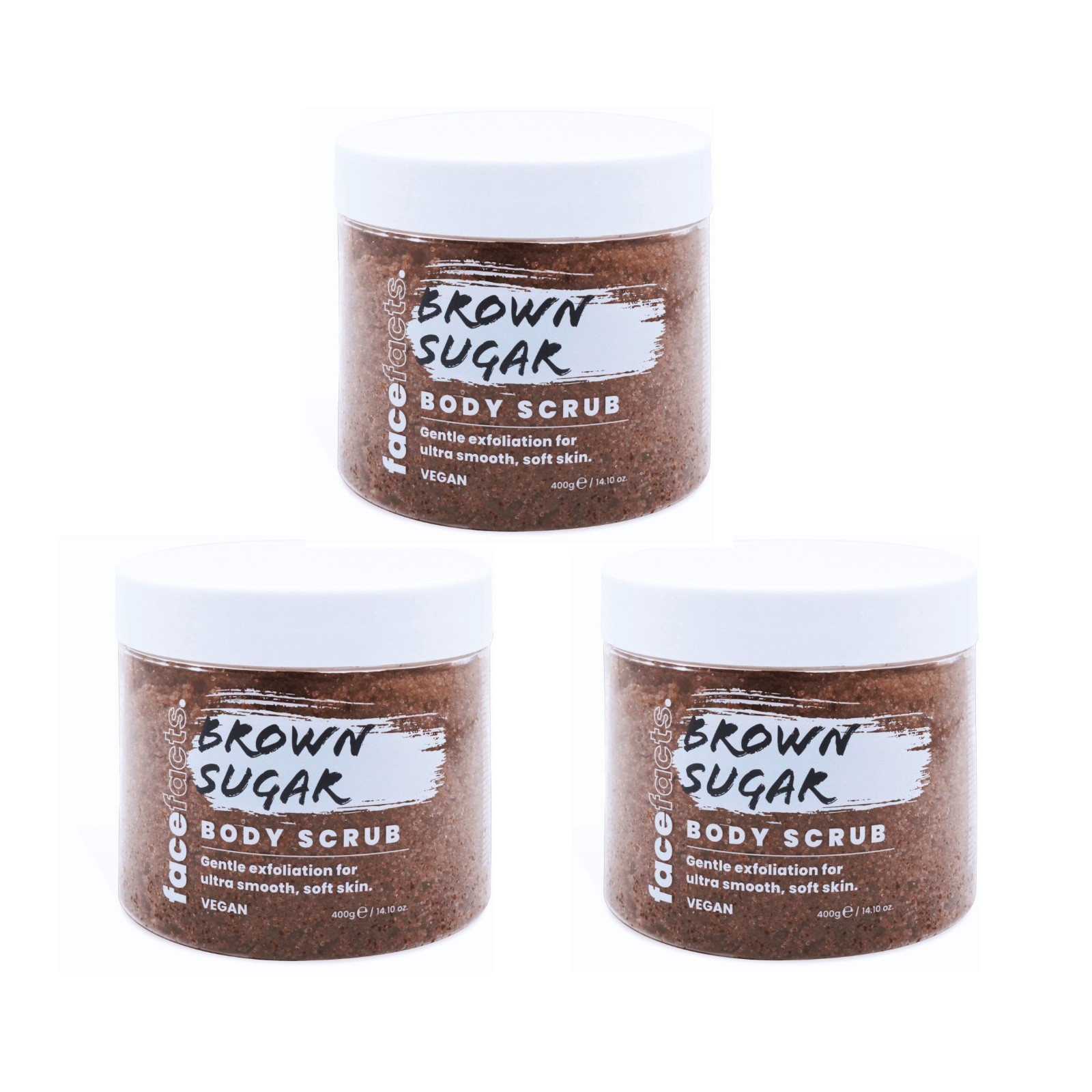 Face Facts Set Of 3 Brown Sugar Body Scrub For Exfoliating Smooth Skin |Free P&P