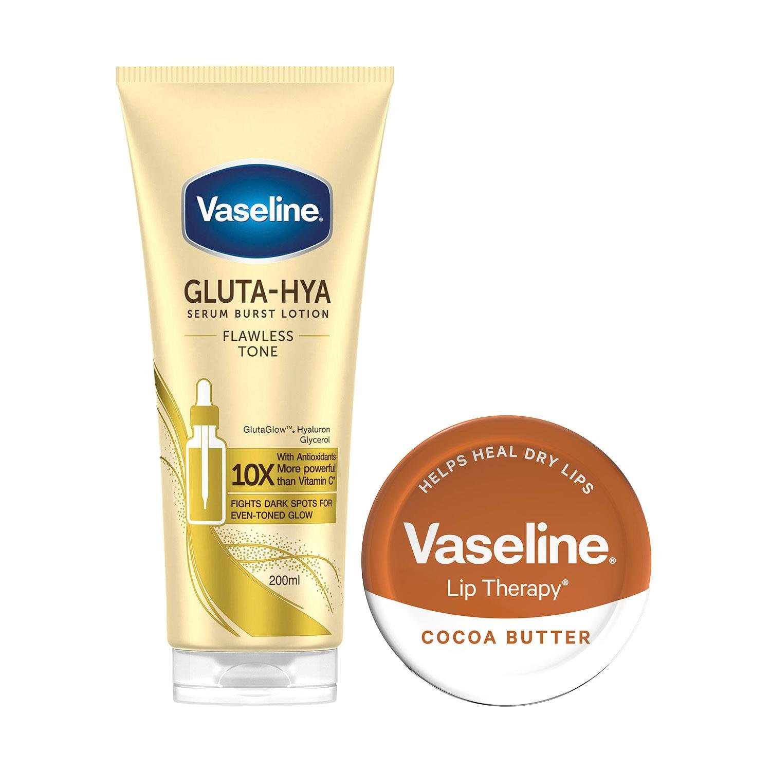 Vaseline Gluta Hya Flawless Tone Body Lotion 200ml & Lip Balm Cocoa 20gm Duo Set - Brown - One Size