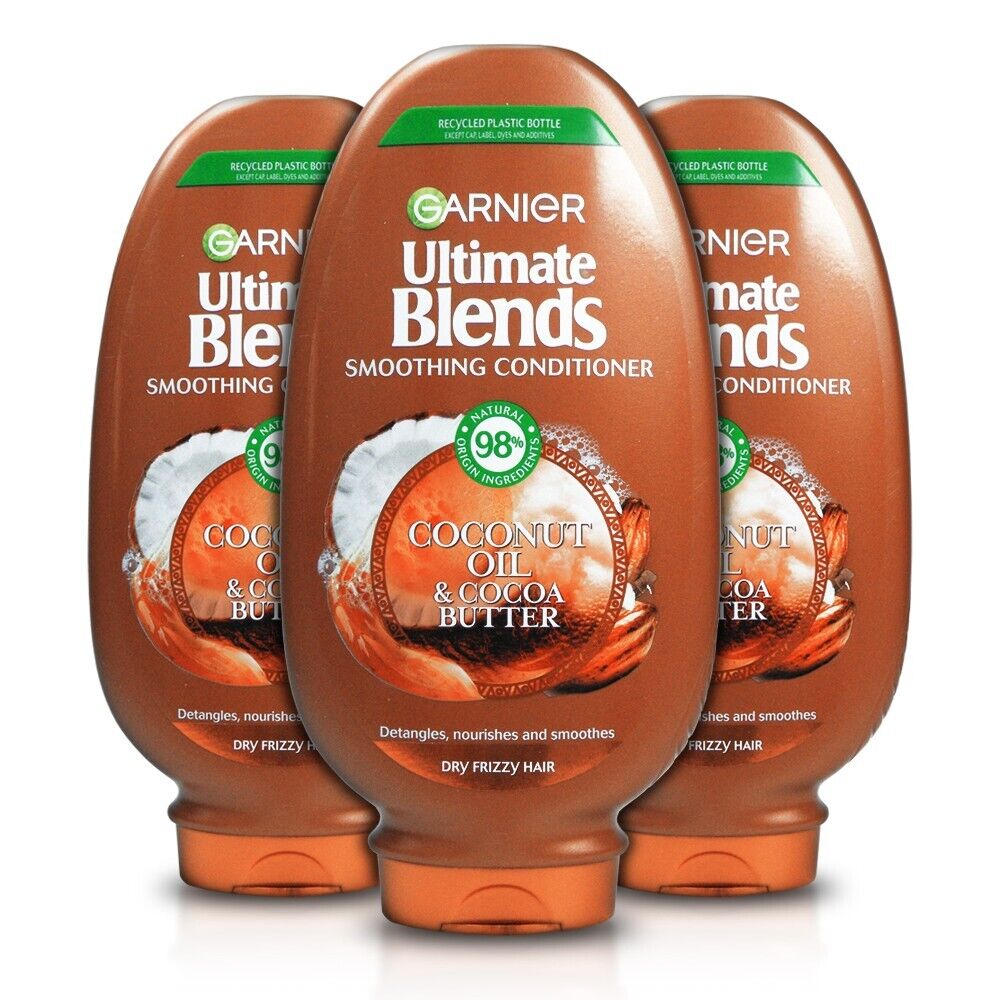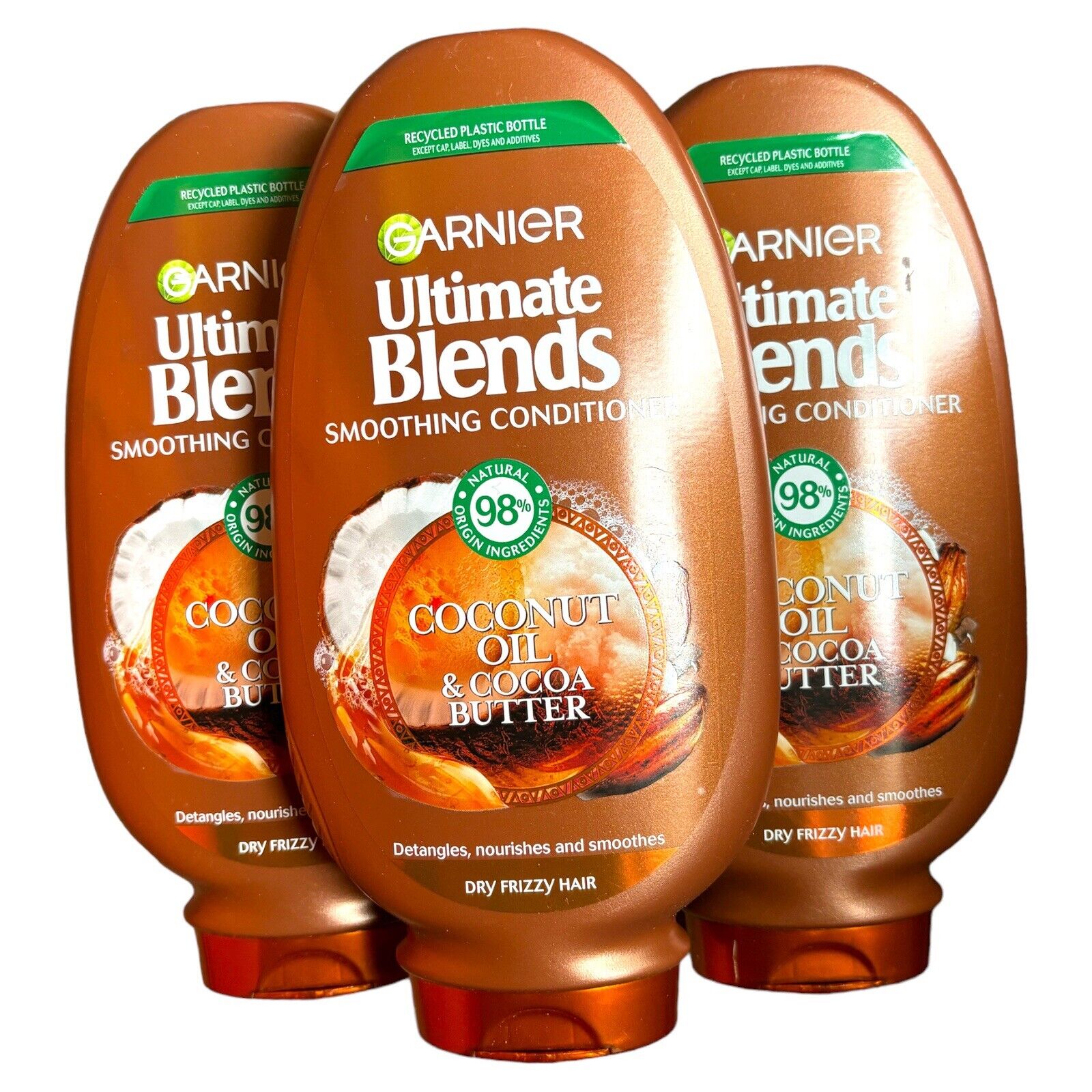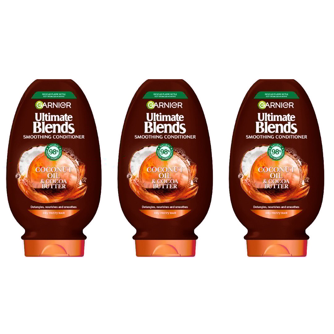 3x Garnier Ultimate Blends Coconut Oil Cocoa Butter Smoothing Conditioner 400ml