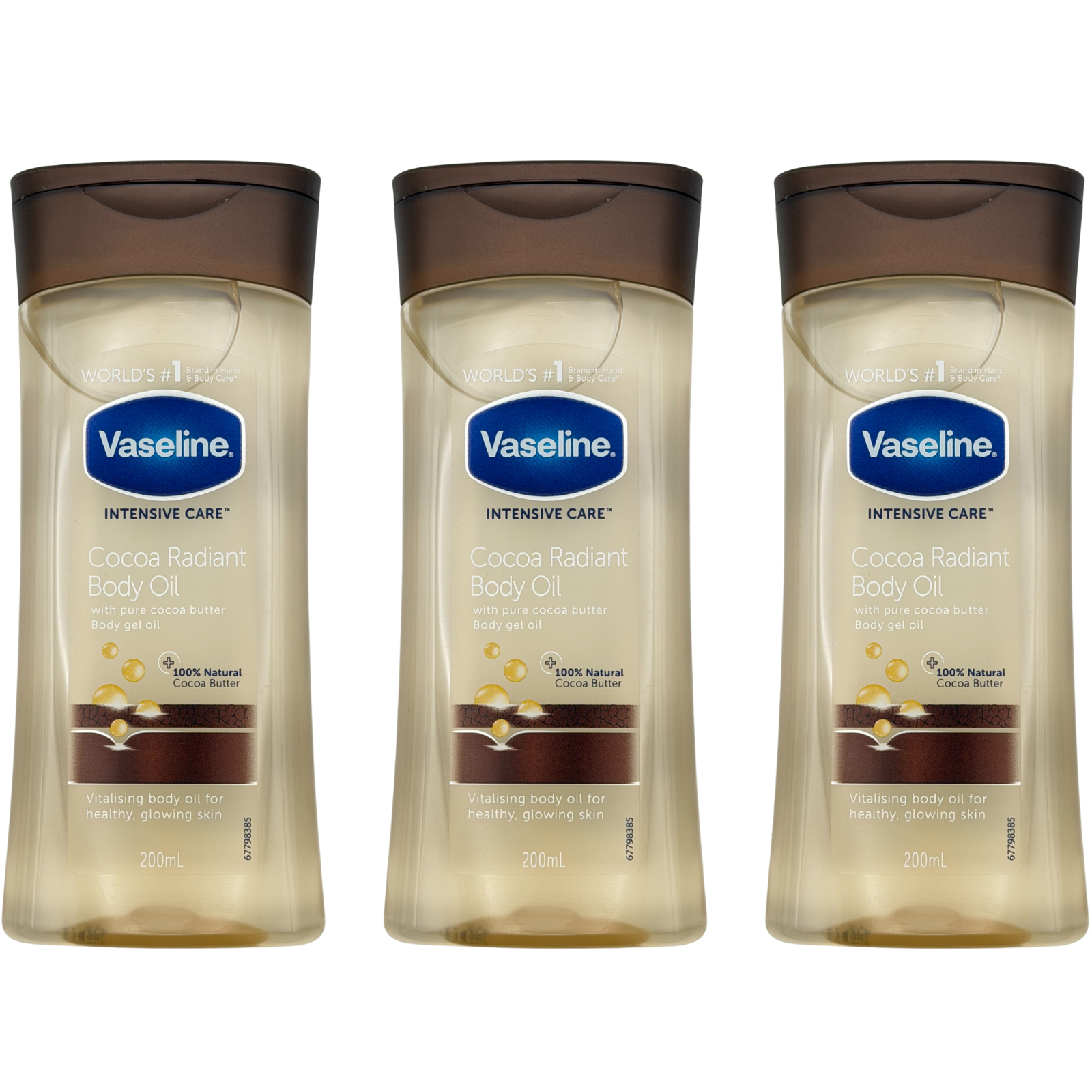 Vaseline Intensive Care Body Oil Cocoa Radiant 200ml - 3 Pack