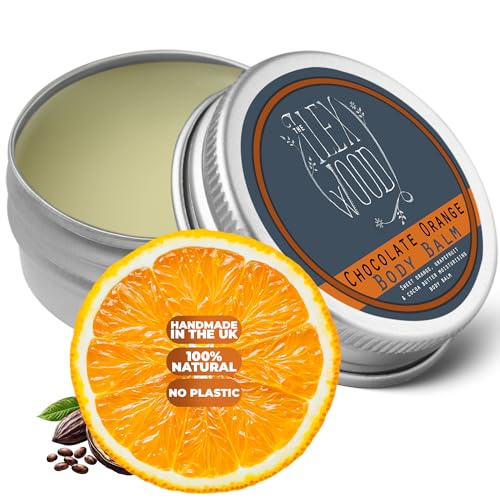 The Ilex Wood - Chocolate Orange Body Balm - 250ml. Orange and Cocoa Butter Vegan Body Balm. 100% Natural Moisturising Butter Cream. Handcrafted in UK. Cruelty Free, Palm Oil Free, Plastic Free.