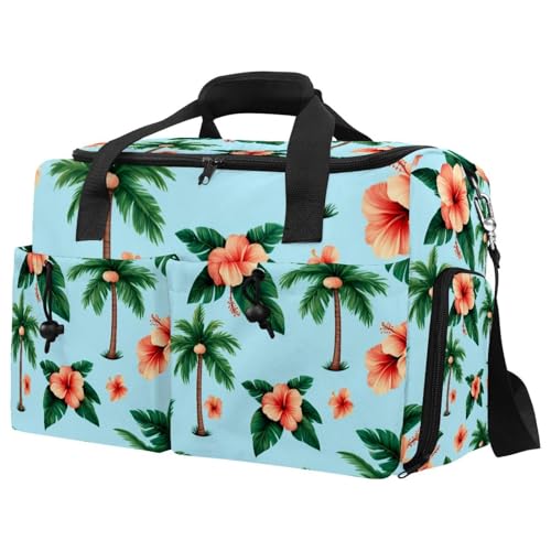 Travel Duffel Bag Cabin Size Weekender Holdall – Gym, Fitness, Sports or Overnight Bag for Men & Women, Coconut Palm Leaves and Hibiscus