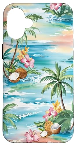 Tropical Beach Pattern Palm Tree Coconut Hibiscus Summer Case for iPhone 16 Plus