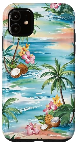 Tropical Beach Pattern Palm Tree Coconut Hibiscus Summer Case for iPhone 11