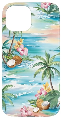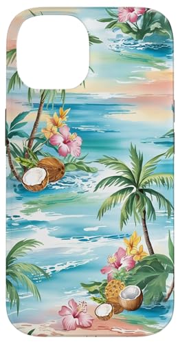 Tropical Beach Pattern Palm Tree Coconut Hibiscus Summer Case for iPhone 15