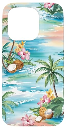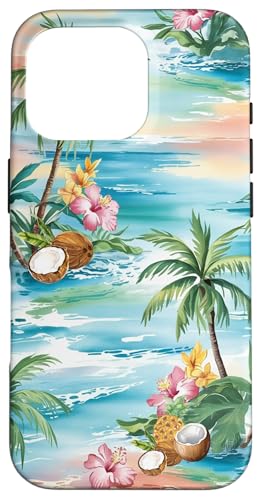 Tropical Beach Pattern Palm Tree Coconut Hibiscus Summer Case for iPhone 16 Pro