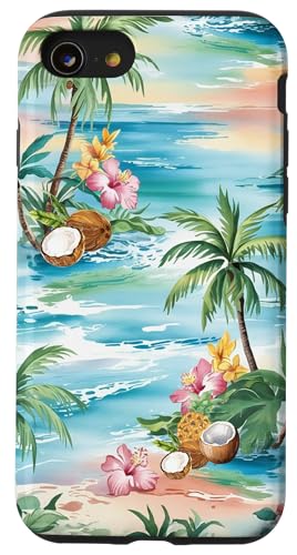 Tropical Beach Pattern Palm Tree Coconut Hibiscus Summer Case for iPhone SE (2020) / 7/8