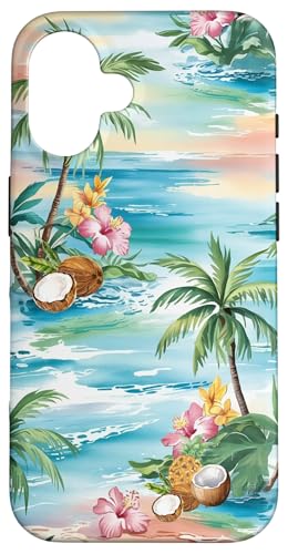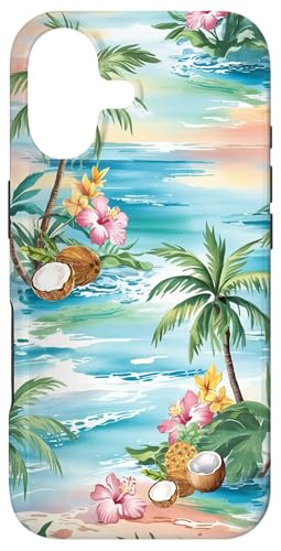 Tropical Beach Pattern Palm Tree Coconut Hibiscus Summer Case for iPhone 16