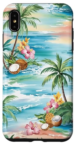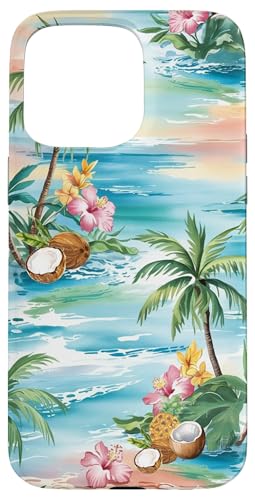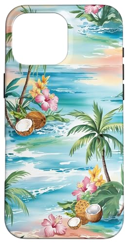 Tropical Beach Pattern Palm Tree Coconut Hibiscus Summer Case for iPhone 16 Pro Max