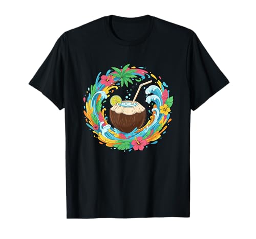 Summer Coconut Cocktail Ocean Waves Hibiscus T-Shirt