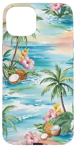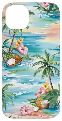 Tropical Beach Pattern Palm Tree Coconut Hibiscus Summer Case for iPhone 15 Plus