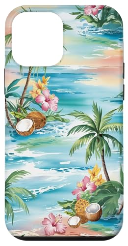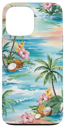 Tropical Beach Pattern Palm Tree Coconut Hibiscus Summer Case for iPhone 13 Pro Max