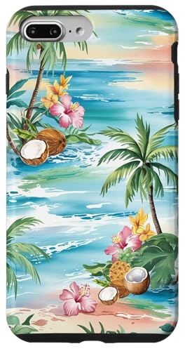 Tropical Beach Pattern Palm Tree Coconut Hibiscus Summer Case for iPhone 7 Plus/8 Plus